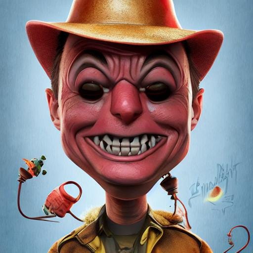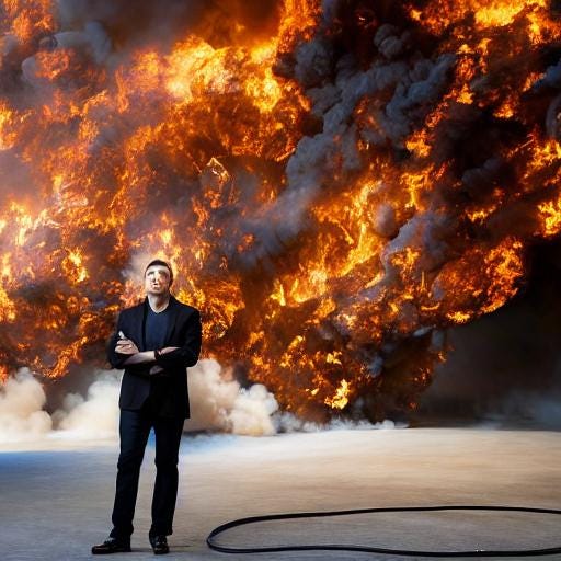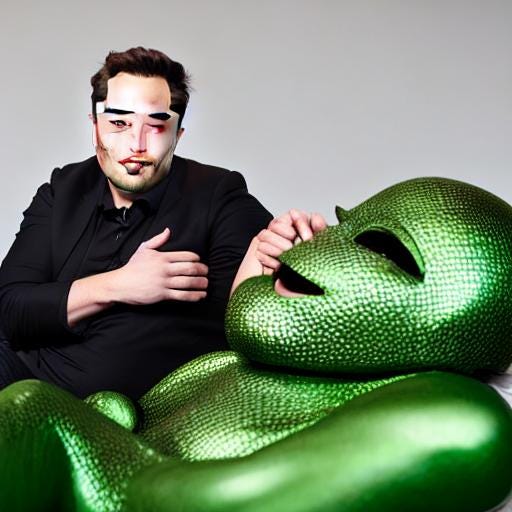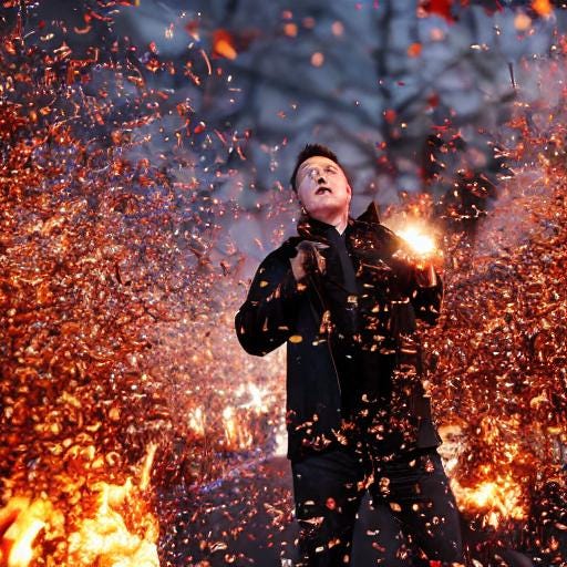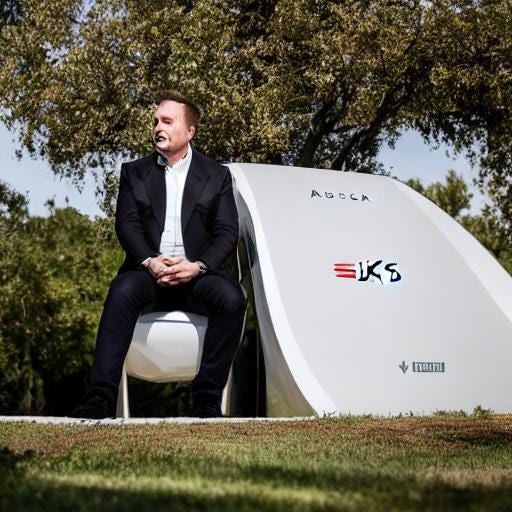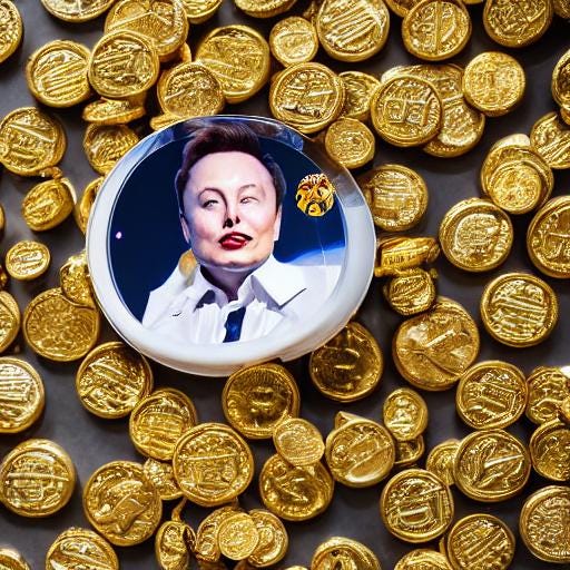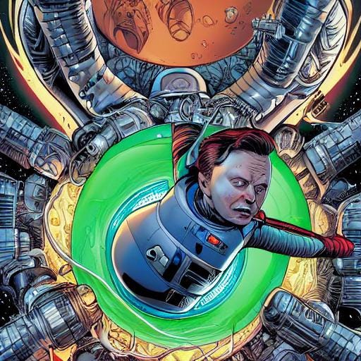 And here you are, another presentation of my experiments in using AI to create goofy pictures. Now to express my annoyance with the caricature of himself which the wealthiest man on earth has now become.