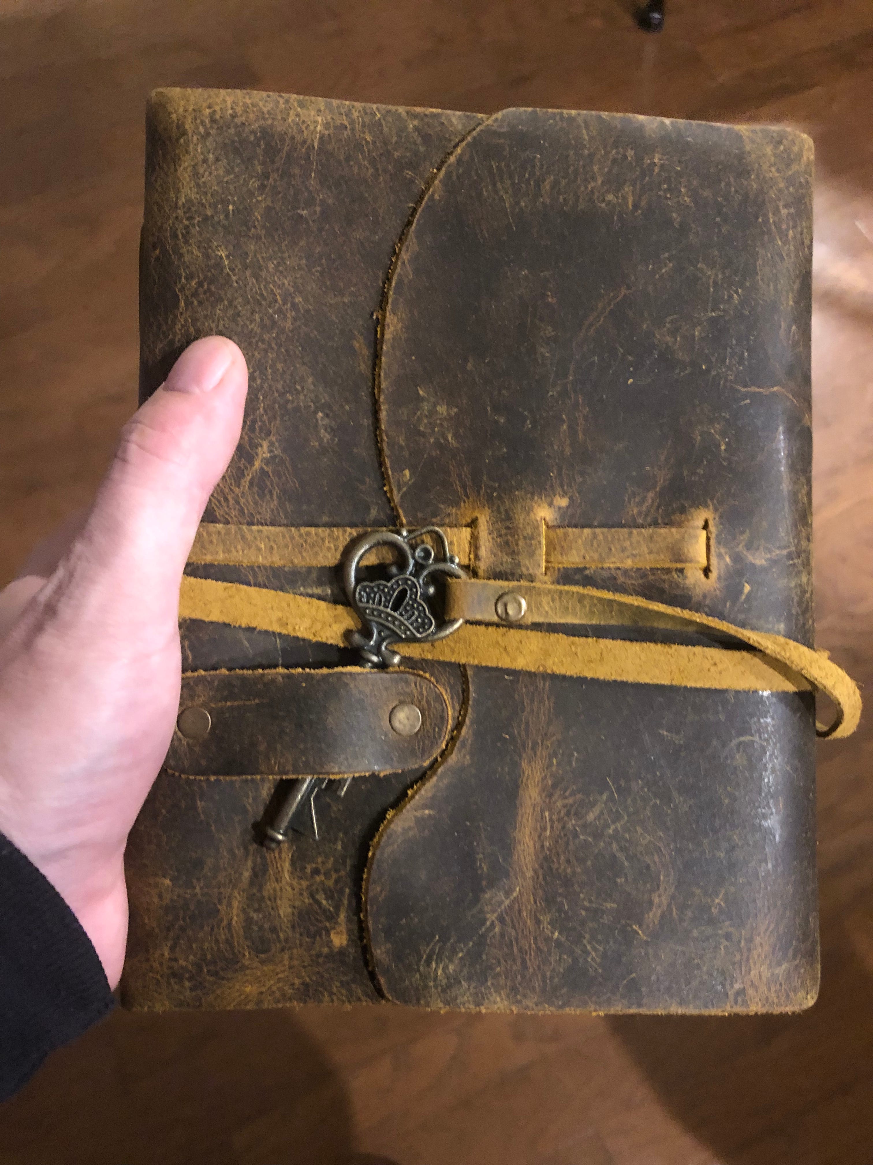 So my future in-laws got me the most wonderful Christmas present, this leather journal made in India: