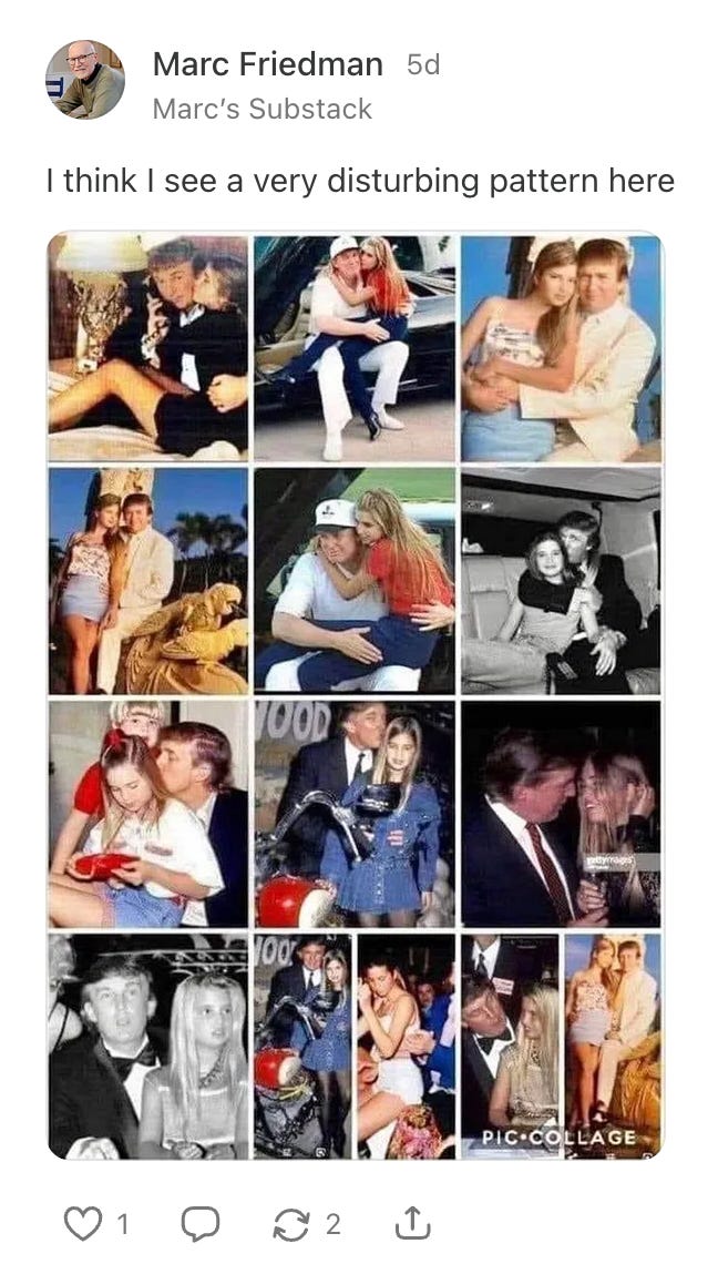 [And, I’m sorry, but I have to interject here: This is something about this narrative which is endlessly annoying: Jeffrey Epstein was not a pedophile. He was not sexually interested in children. Rather, he was a hebephile: He pursued adolescent, teenage girls—a distinction that is too complicated for most of the people fantasizing about this story and concocting their whole fucking political identity around it.]