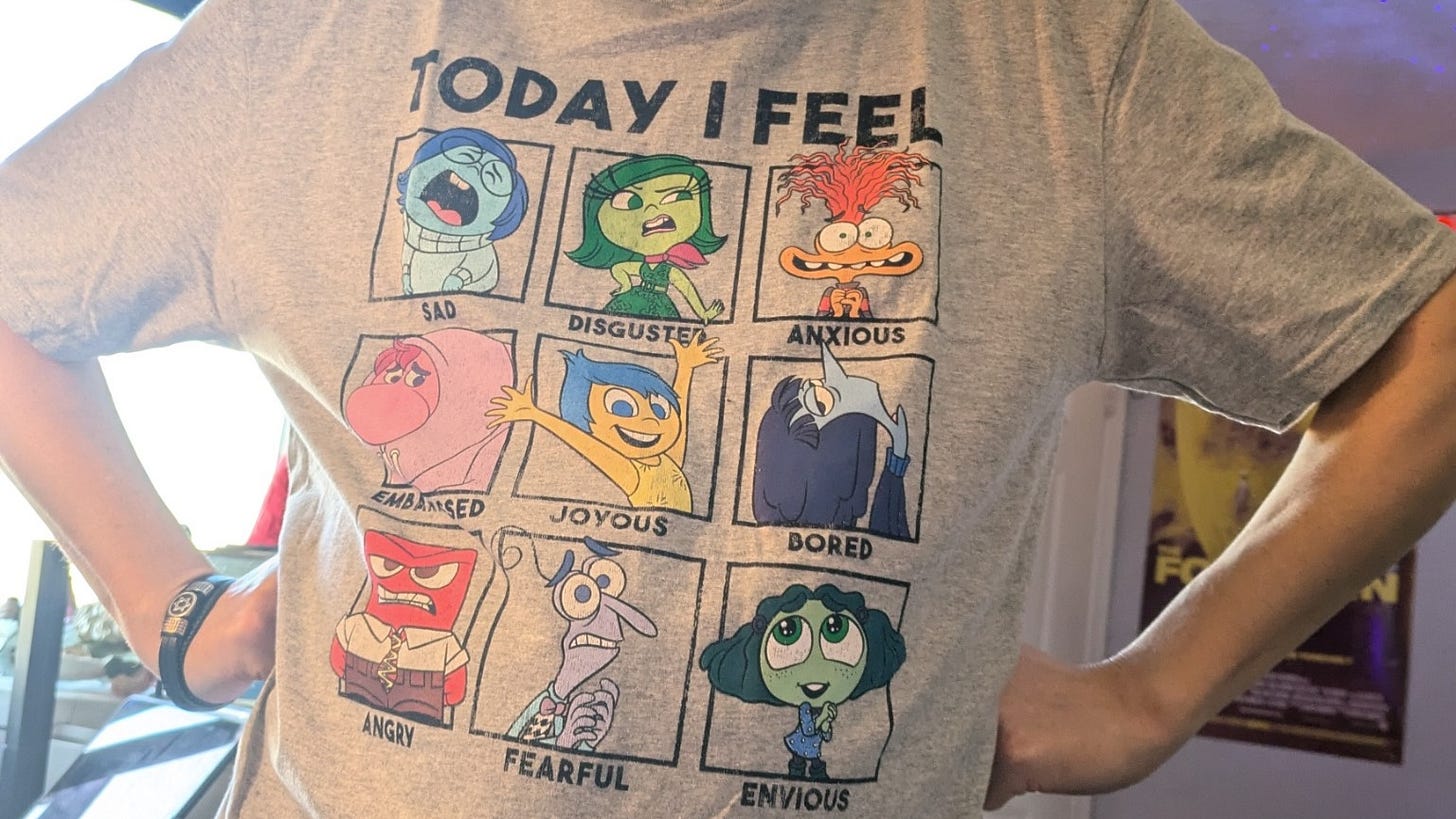 A feeling is one of those creatures in your head depicted in Pixar's greatest films, “Inside Out” and “Inside Out 2.” Sally just gave me this cool shirt for Christmas depicting those emotions: