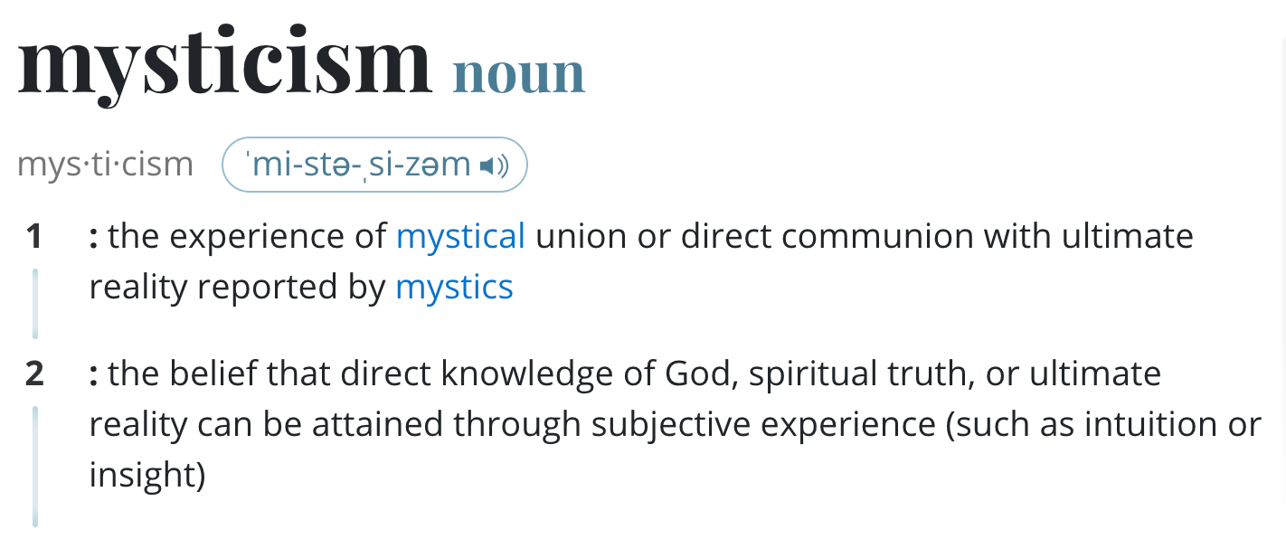 When I advocate for mysticism, Iâm doing so by the basic, conventional definition of the term according to Merriam-Webster: