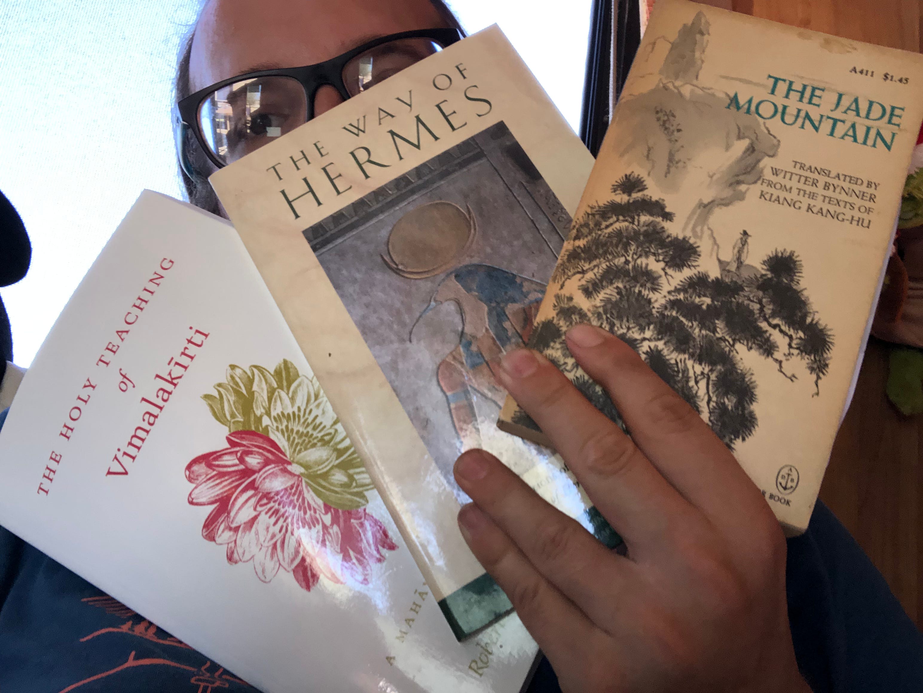 As this series progresses I may decided to allocate other days of the week for Eastern, Native American, Pagan, and other mystical traditions. I may also continue to juxtapose these traditions with Western ones also. I’ll continue to explore the book of Chinese poetry, The Jade Mountain, sent to me by my friend Fred Tribuzzo. I’ve also got The Way of Hermes: New Translations of the Corpus Hermetic and The Holy Teaching of Vimalakirti, a Buddhist text recommended by another friend.