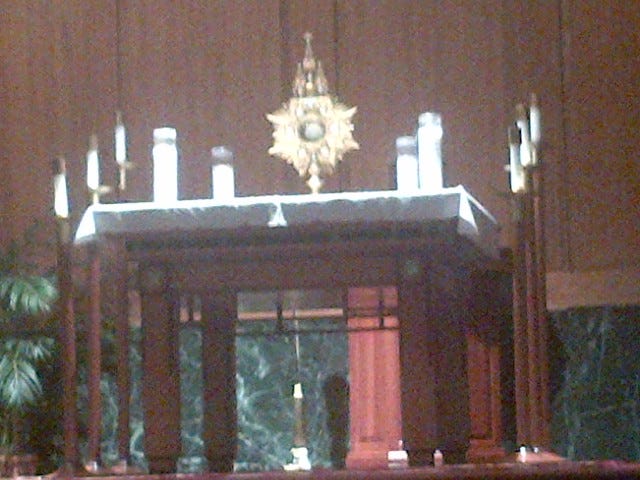 I gaze upon him and am sometimes startled by the simplicity of the small white disk up there on the altar. I ask you the reader to think about this. As an ordinary nobody, I cannot get a meeting with anyone of importance in the world. I will likely never meet a president, the King of England, nor the Pope. And even if I try, there will have to be something of great importance that I can offer them to be seen. But, the Creator of the Universe, my God, my Savior, my King, my Judge, my adopted brother, my best friend, and the one I pray to for everything is right there in front of me. And, he is the unchanging God of all time. In a way he is present here as he is present across town in another parish’s tabernacle as he is present across time, now and in the Fifth Century as he is present in the Twenty-Fourth Century. I am staring into all of eternity. He is timeless and everywhere, but I have him in front of me, right here, right now. And I have his ear. Again, I can’t wrap my mind around that, but I believe it.