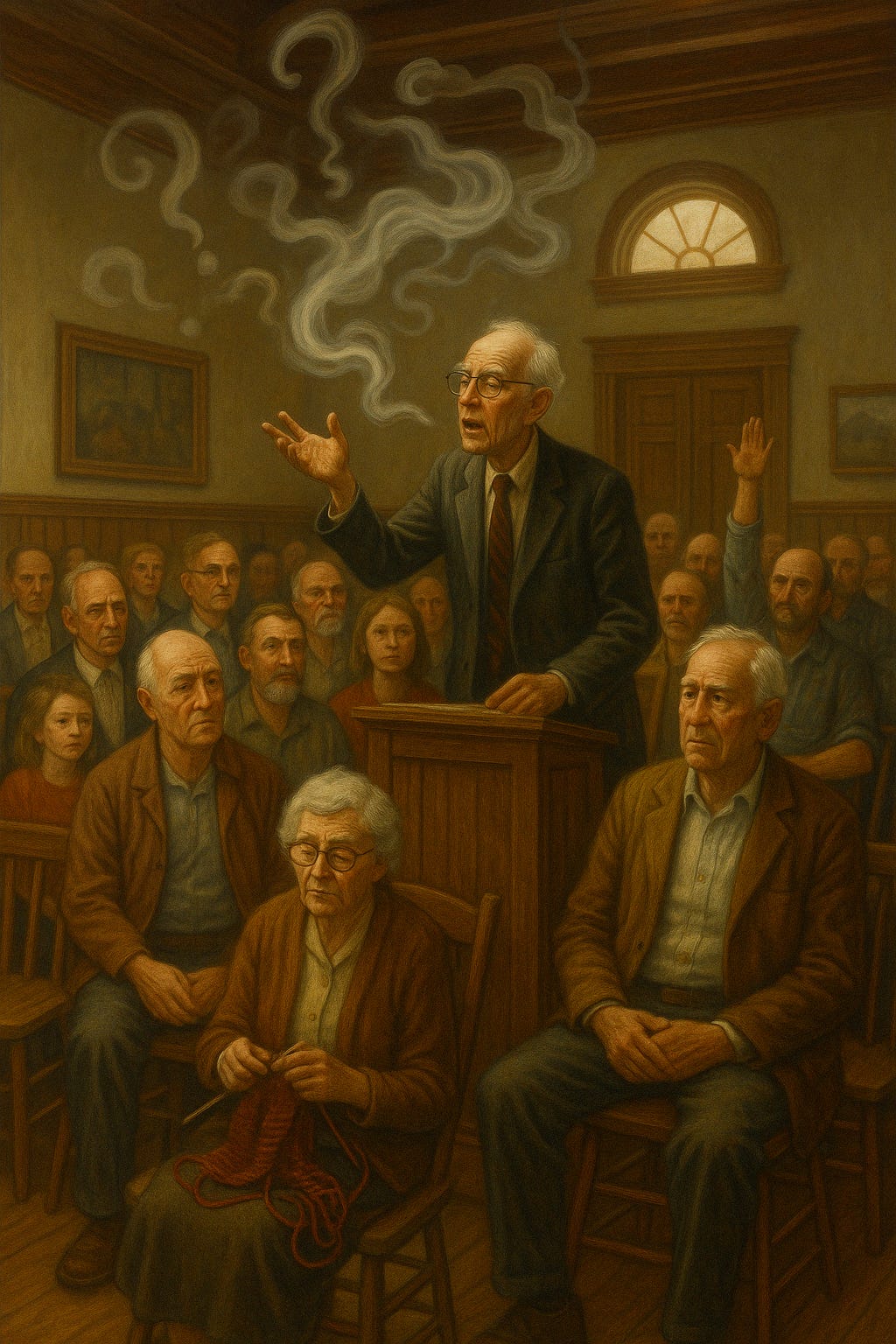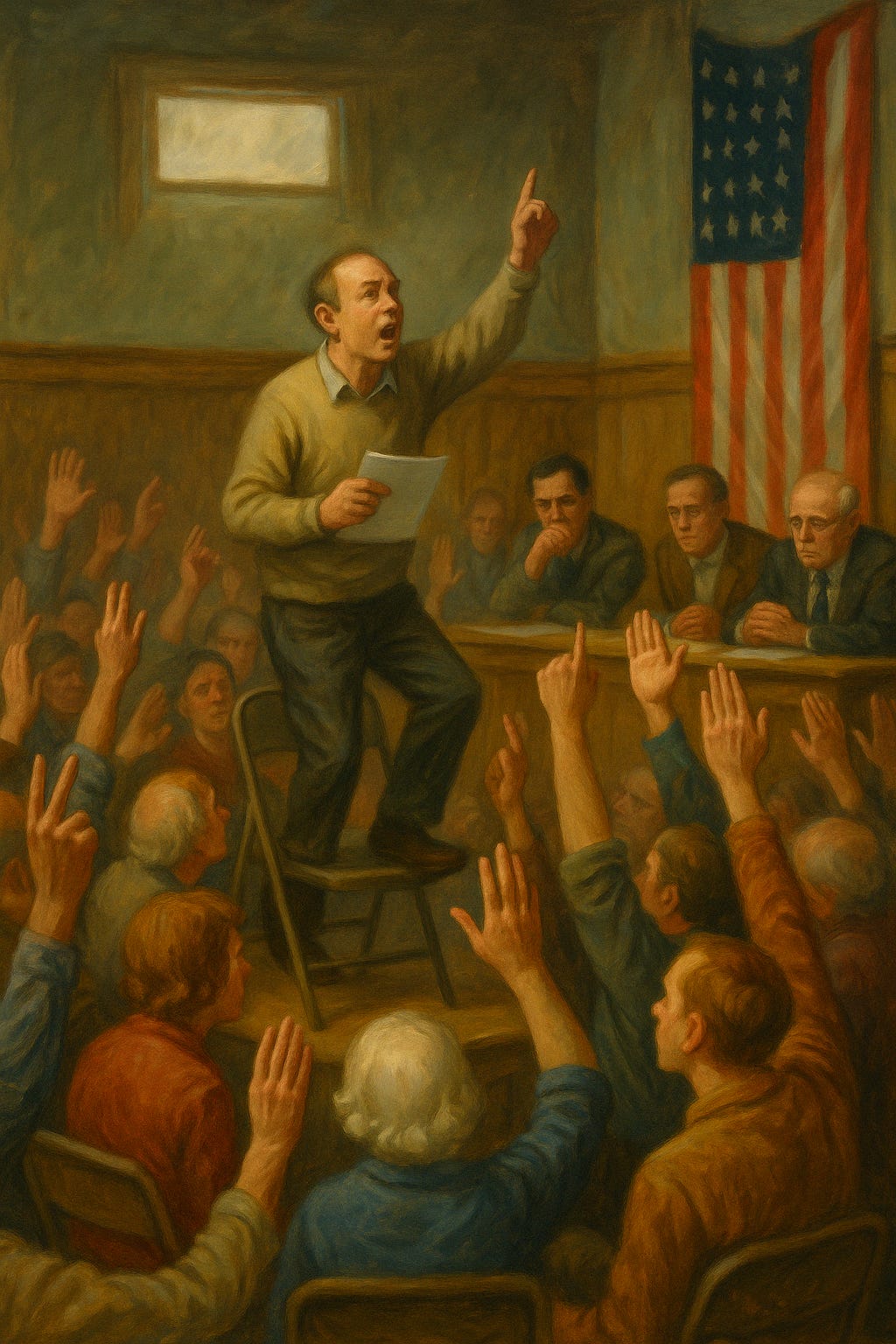 All of this is evident at Town Meeting, especially since many people are, understandably, quite busy, so the people who mostly have time to be actively involved in their town’s affairs are either elderly, which means they have a particular set of interests they’d like to advance, or somewhat unstable people who like to hear themselves talk and articulate loopy, even if occasionally well-meaning, ideas. In short, demagogues.