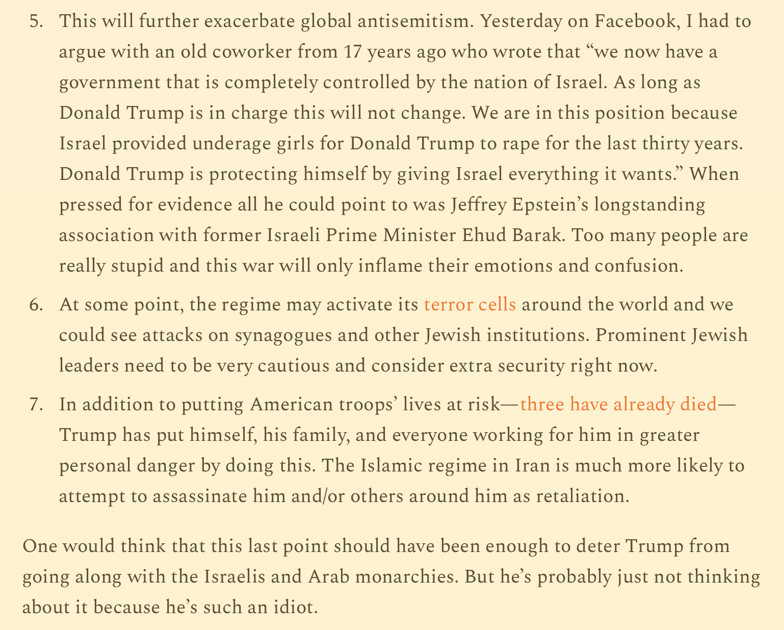 President Donald John Trump choosing a regime change war in Iran means that Jews in America are more in danger of being killed. And so are the rest of us too, but the Jews are who the Islamic regime in Iran wants to murder first.