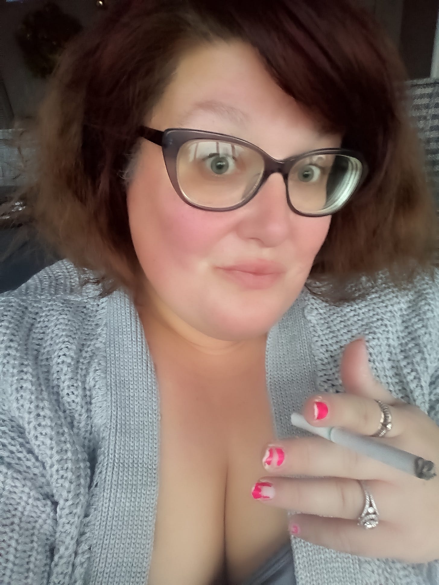 Ah, my sloppy self: Frizzy hair badly in need of coloring, very chipped nails, disgusting habit, and all. Not my ✨best self✨ - but certainly my real self! I mean, you've gotta meet yourself where you are, and love yourself.